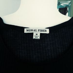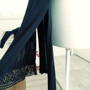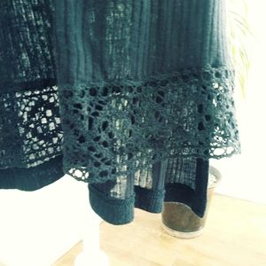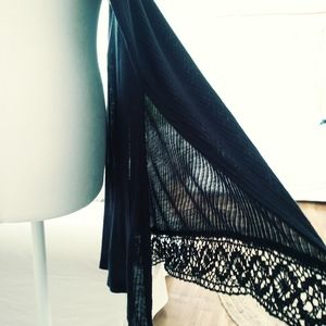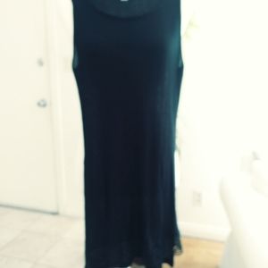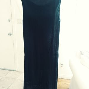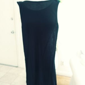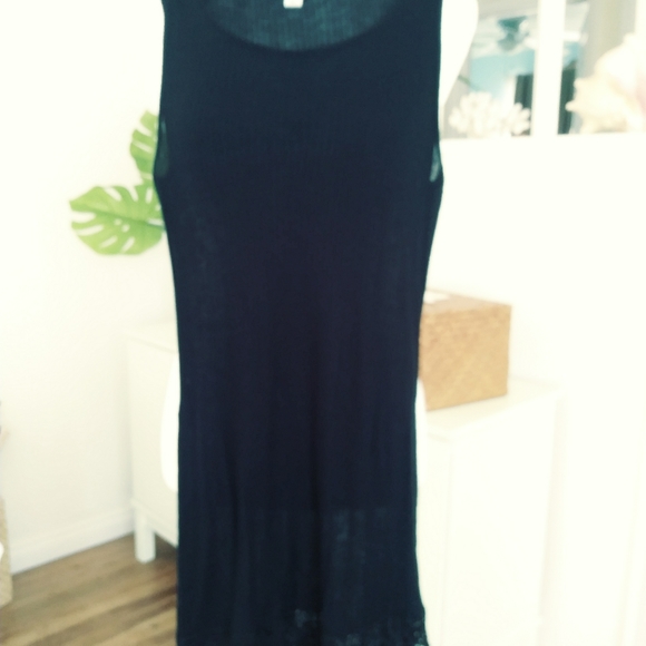Black long tank top 32 in in length, knitting at the bottom, pit to pit 16 inches, waist 32 and 1/2 in, 100% viscose, two slits one on each side