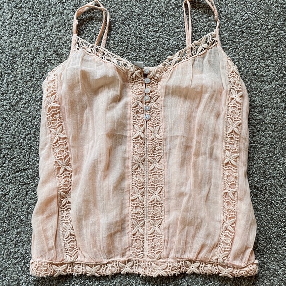 American Eagle light peach lightweight tank top with lace designs (xs)