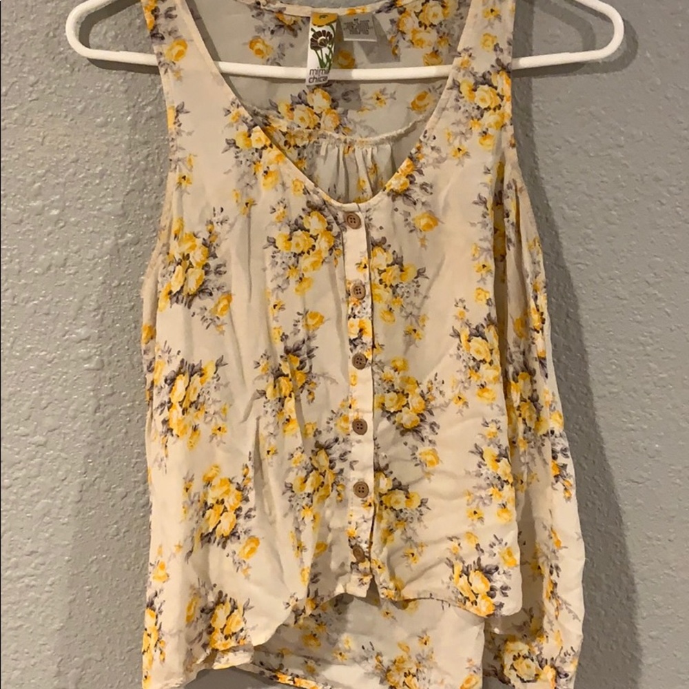 White button down tank top with yellow flowers
