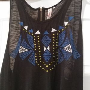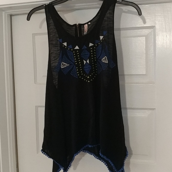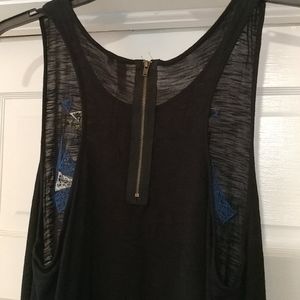 Black and blue tank. Very cute. Has Functional zipper on back. Blue decorative hem. Larger arm holes.
