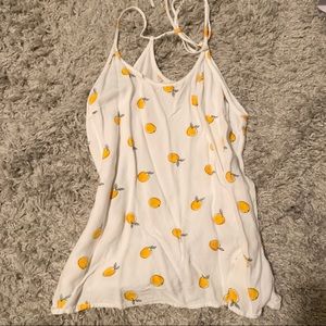 Summer-y tank top with orange graphics Thin straps that tie in the back Target brand Size Small