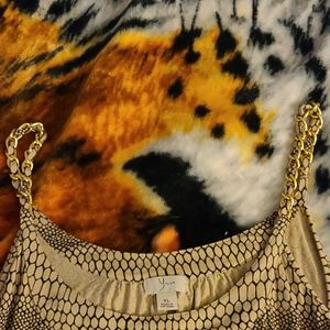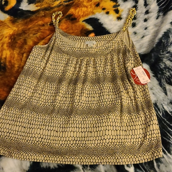 Beautiful dressy tank top has gold chains around the straps that sit on your shoulder no holes,stains or tears smoke free & dog free home