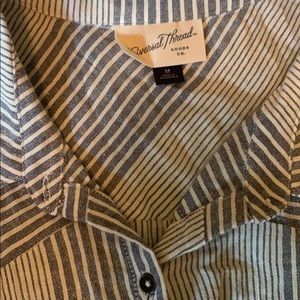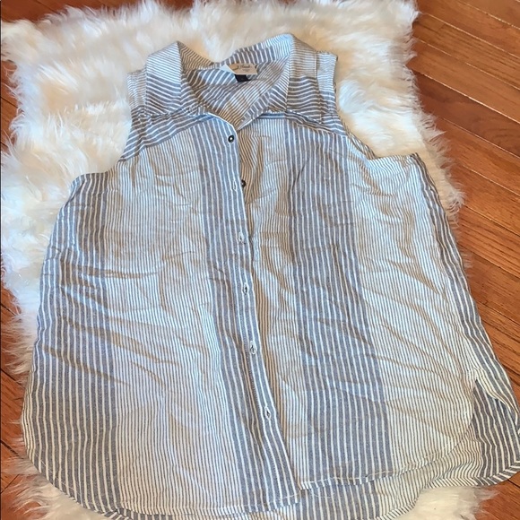 Blue striped collared tank top, great for a casual work day with a cardigan over it