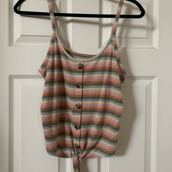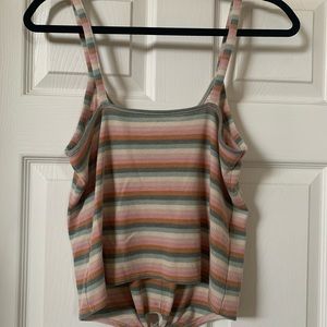 Striped front tie summer tank top