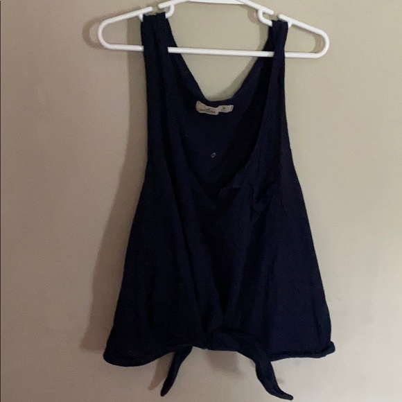 This navy blue hollister tank top comes with a pocket and a tie at the bottom ! So casual and comfortable with a little flare with the tie! Worn once