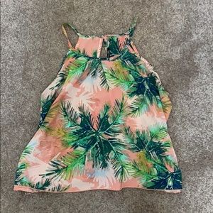 Pink tank with green leaves