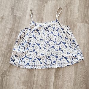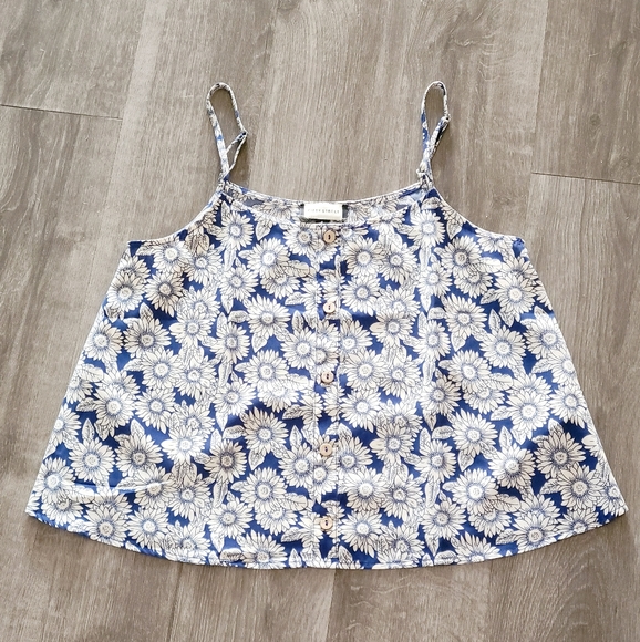 Adjustable straps Blue and white daisy print. Buttons in front just for style. Do not actually unbutton.