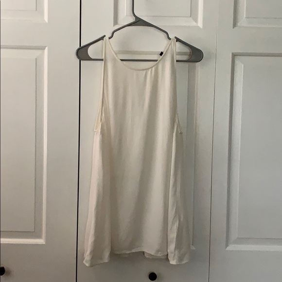 White top shop blouse tank top. Has a slit half way up the back. There is a small stain (pictured) and a little discoloration around the collar from makeup
