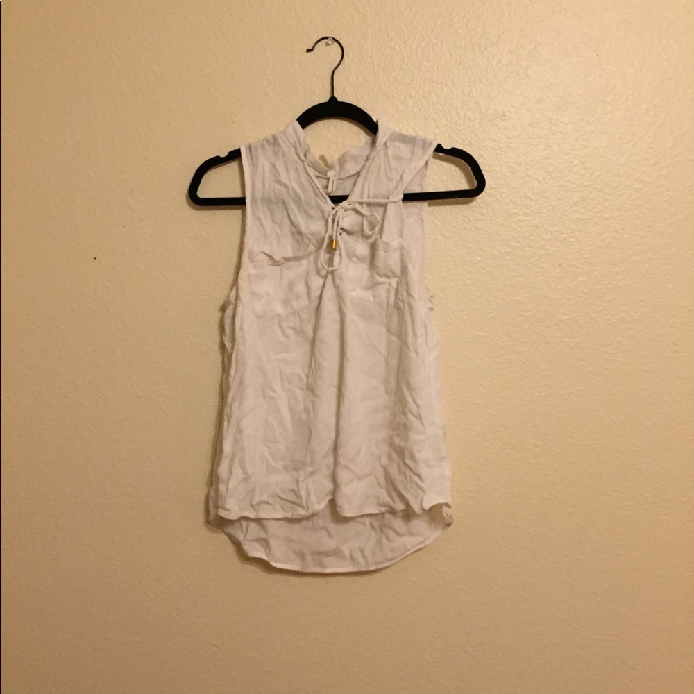 It is a white tank top with a tied up detail in the front