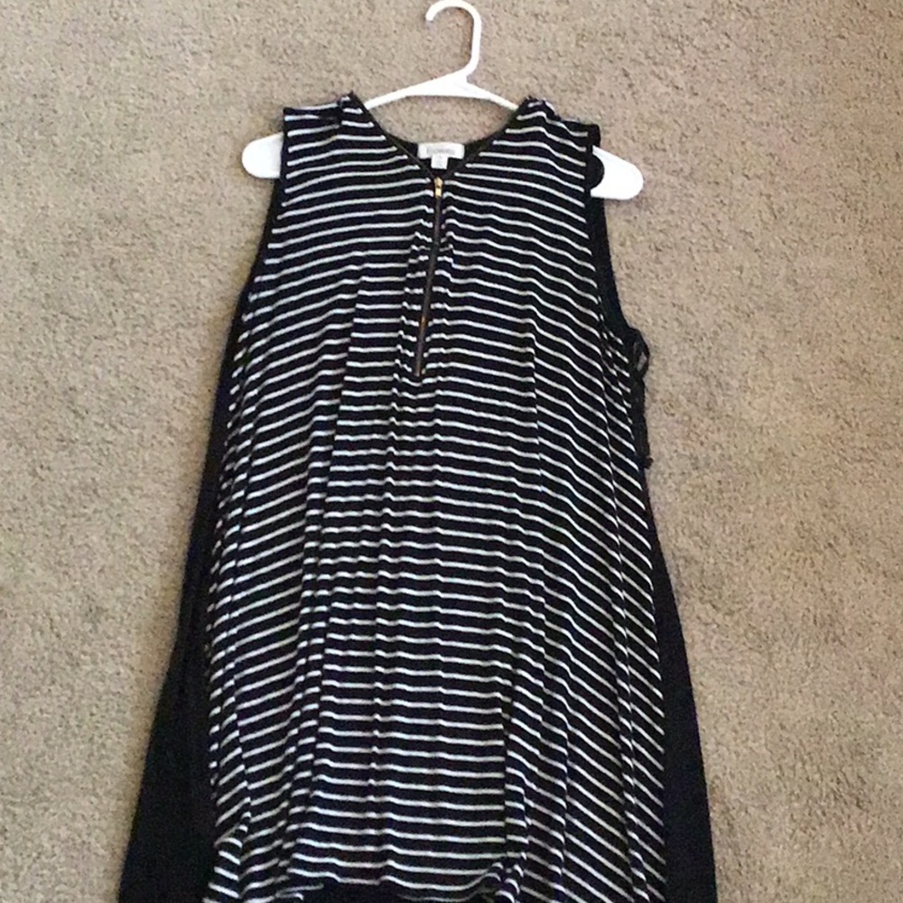 Black back with black and white striped front tank top