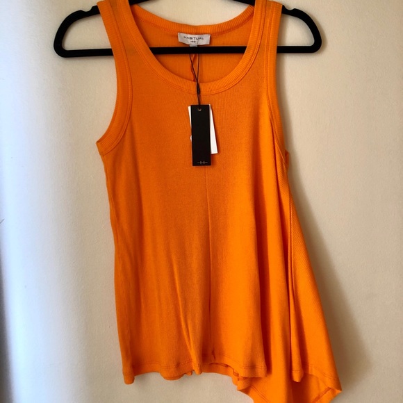Like new Habitual Orange sleeveless shirt. Size small tank top retail price is $68. High quality designer shirt for women. Gently used worn two times.