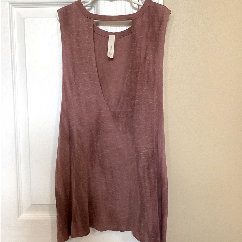 Tank with triangle cutout in front. Super cute with a bralette!