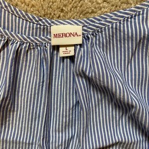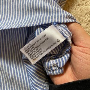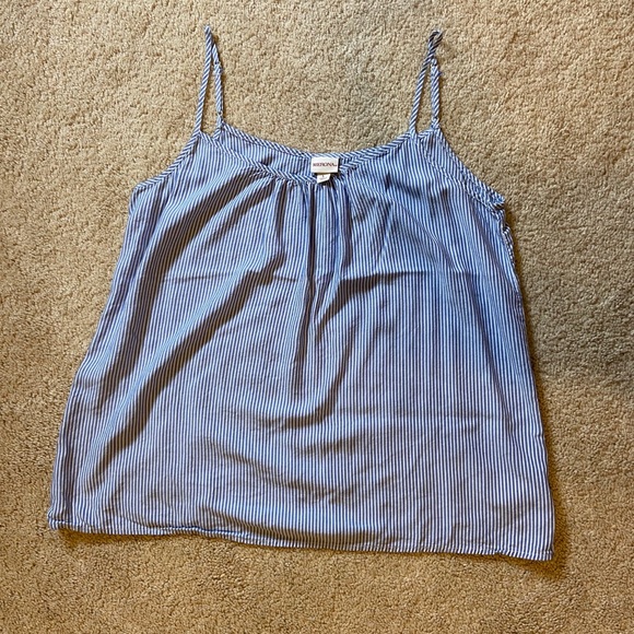 White and light blue stripped tank top.