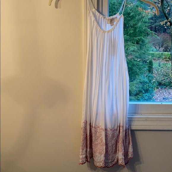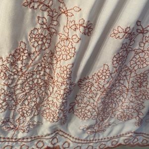 Thin tank top, very flowy and light weight. Pretty embroidered pattern on the bottom.