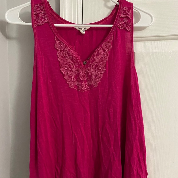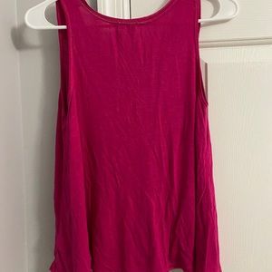 Pink tank top, the front has a few buttons so you can button the top part up or down to your liking. Fits more like a small