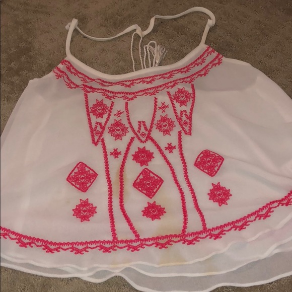 Embroidery tank. Bought from a second hand store didn’t notice the stains on it til I took it home. I never worn it but the owner before obviously did lol.