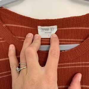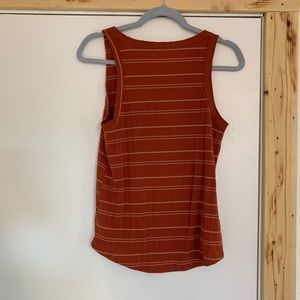 Tank Top Causal with a flare. Burnt orange color. With strips. Material so so comfortable. Like new condition.