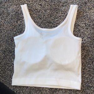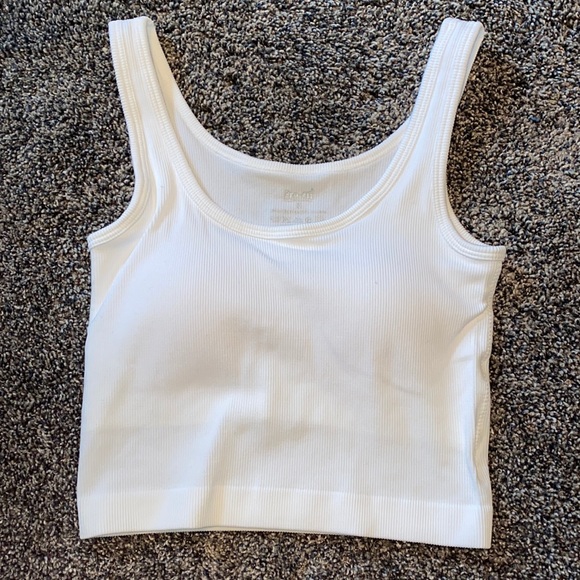Workout tank top with removable padding. Not the best lighting but there are no flaws to this item, it has never been worn before.