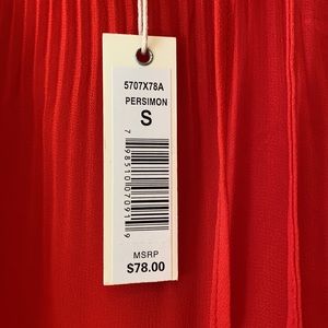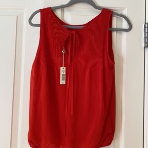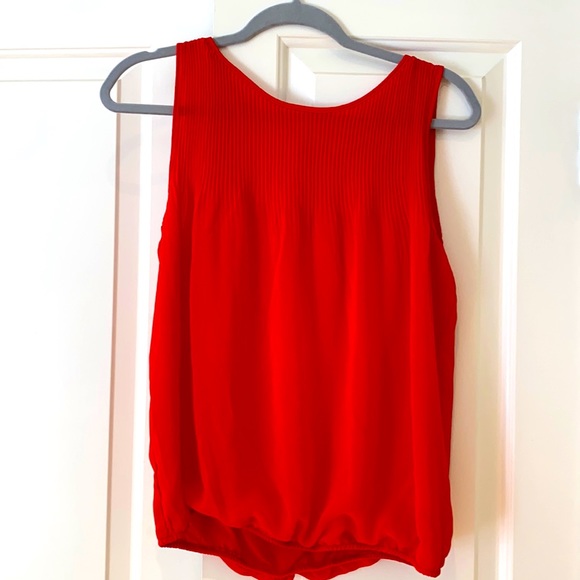 Tank top size small, with elastic at the waist and a teardrop design on the back. Color on tag listed as Persimon.