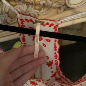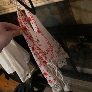 Super cute red and white tank top from free people that ties up on the sides. It’s a size large but could most definitely fit smaller.