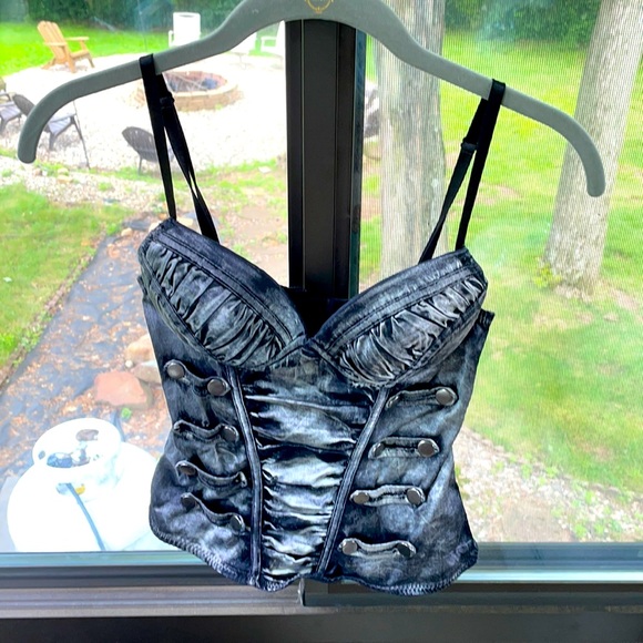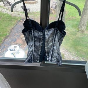 Padded spaghetti strap tank top! It can be adjusted as shown in the photos to fit you perfectly. A little beading in the padding from washing, but overall only worn a few times! It may look like a crop top, but it wasn’t on me and I’m 5’ 3”