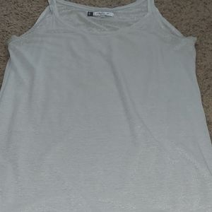 Silver grey tank top. Normal wear around the arm pit area
