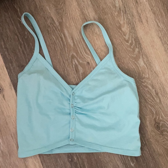 Blue button up spaghetti strap tank top