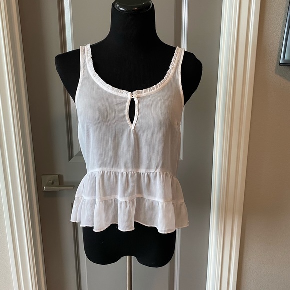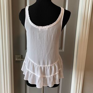 White sheer loose fitting tank top, with button closure on the front