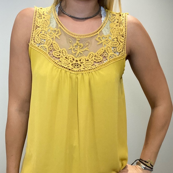 Mustard tank top with lace detail. Great condition.