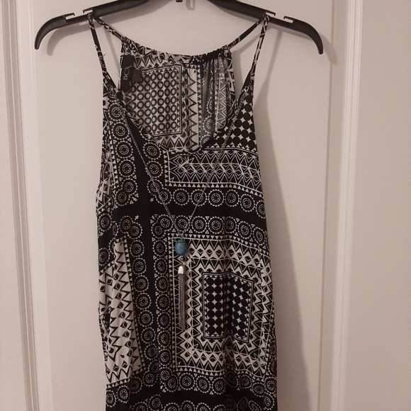 Cute top with attached necklace. This top used to be my" go to " top. Can be worn with a sweater or alone. Pre-loved condition.