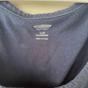 Men’s Old Navy tank top. Navy blue with grey and red stripe. Good used condition, no stains or snags.