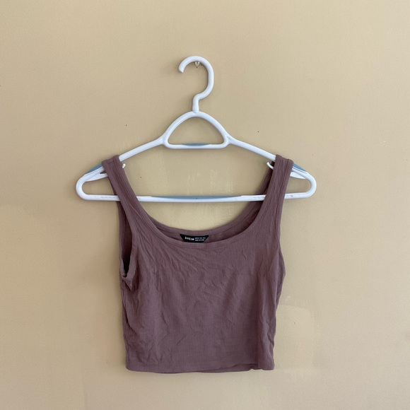 Fairly new tank, worn once! Light brown 35% cotton 65% polyester 5z spandex