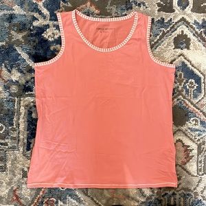 Cute tank top with detail trim. So cute for summer π! Measures approximately 19 1/2β arm pit to arm pit laying flat & 24 1/2β long. 100 π― cotton. New never worn.