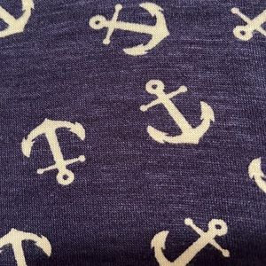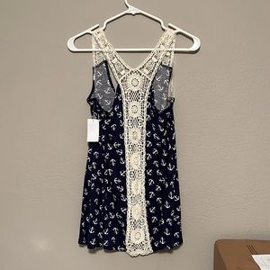 Navy blue tank top with anchor pattern and crochet on shoulder part of “sleeves” and down the back. Brand new with tags.