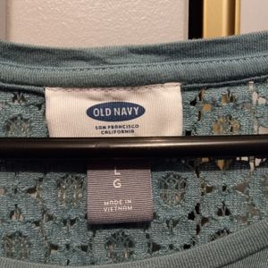 old navy tank top, lace on the shoulders and upper back. little bit of discoloration on the bottom.