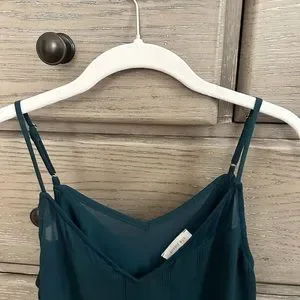 Loose-fitting tank top from Sophie Rue. Perfect for date night or for the office. It’s a dark blue-green color