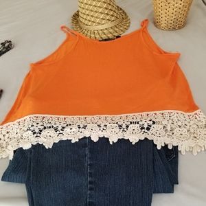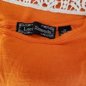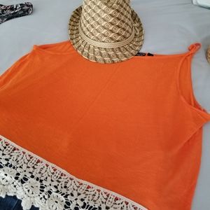 Lucy Diamonds knit tank top with lace trim hem 100% Rayon/Cotton Size: 1x Color: Orange New not used