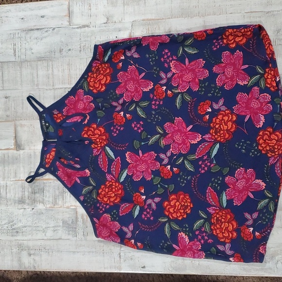 Floral cut out neck line tank. size M