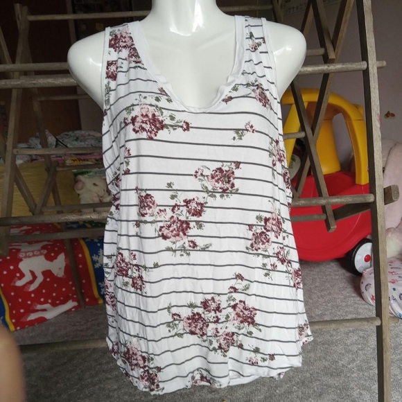 Maurice brand tank top size large in floral print patterns in black & white stripes in excellent condition, so very soft.
