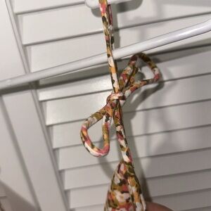 Super pretty tank top. Never worn, too big for me. The straps can be tightened by tying them tighter. So cute for summer. No size but fits like a small!
