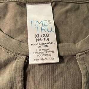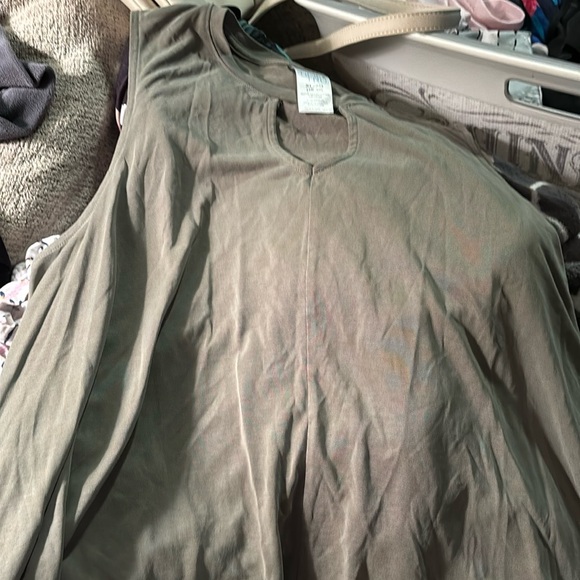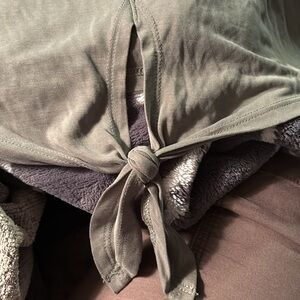 Very comfy olive green tank top, tie at the waist, 23 “ pit to pit, 24” long