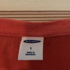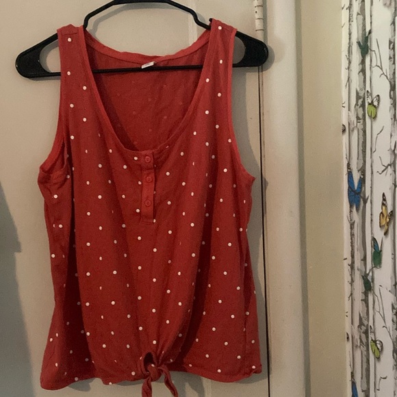 Old navy size large tank top. Coral/orange with white polka dots. Tie in front.