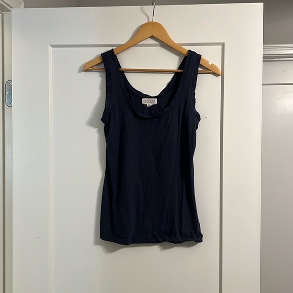 Dark blue tank top (about 3 finger width sleeve) Light weight material Gently used, no damage