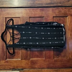 This tank features a criss cross strap back pattern and a split hem.