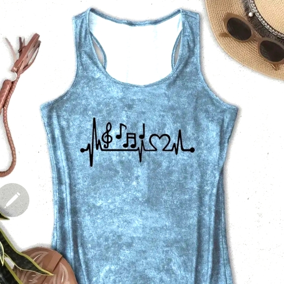tye dye tank top with heartbeat music notes size small, new without tags, never worn.