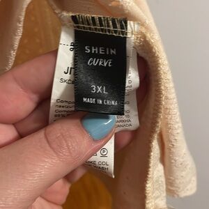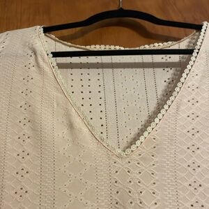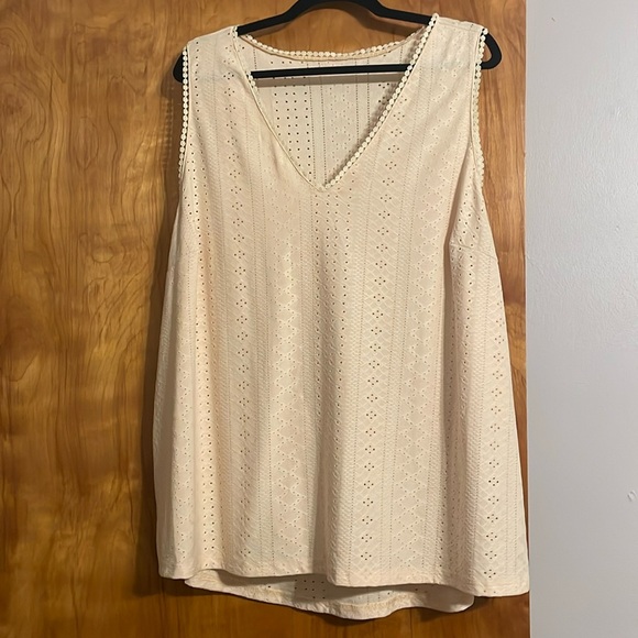 V neck tank top with scalloping around the neck