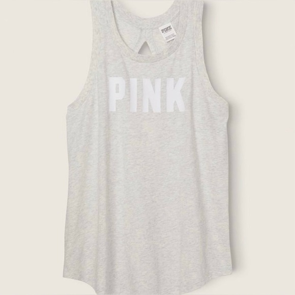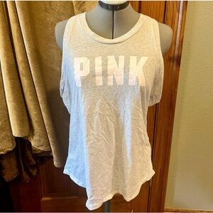 Brand new with tags, PINK Victoria’s Secret Knit Racerback Perfect Tank Top! Super comfortable gray tank top with the logo in white across the front. Also has a cute cut out on the back, size XL! All specifications are listed in the photos.
