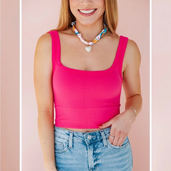 NIKIBIKI: CHEVRON KNIT TANK TOP- ALOHA PINK #tanktop #boutique #seamlesstank