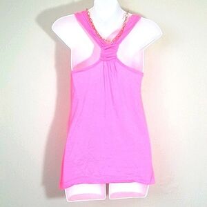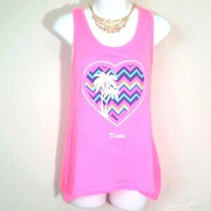 Tank top Destin Florida Racer back palm leaf heart print stretch Collectible EUC
