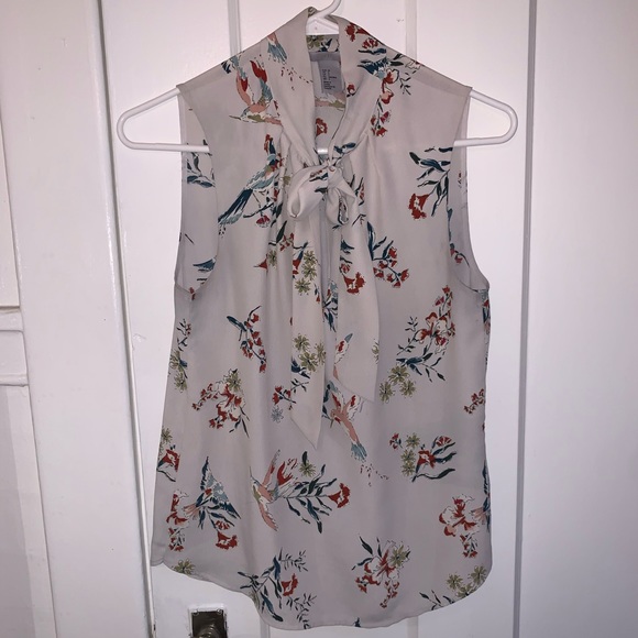 Women’s tank top blouse- size 2 and fits true to size. Front tie can be worn in a bow or knot. Moderately worn.